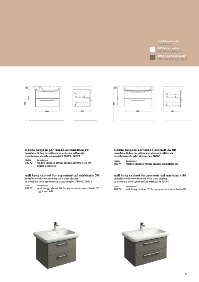 wall hung cabinet 60 for asymmetrical washbasin 70