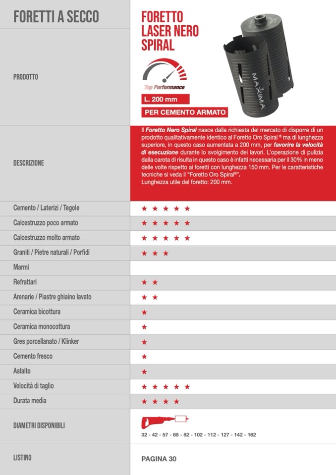 delle volte rispetto ai foretti con lunghezza 150 mm. Per le caratteristiche