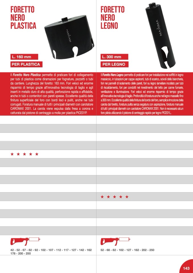 corrugati. Foratura manuale di tutti i principali diametri con carotatore