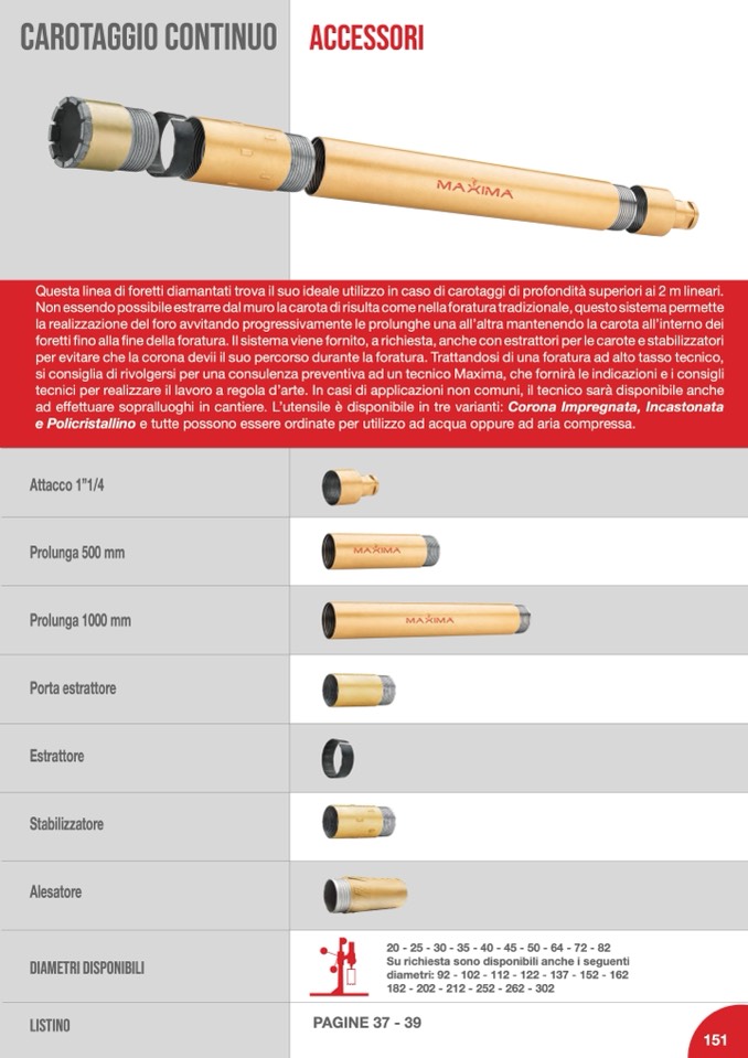 Questa linea di foretti diamantati trova il suo ideale utilizzo in caso di carotaggi di profondità superiori ai 2 m lineari.