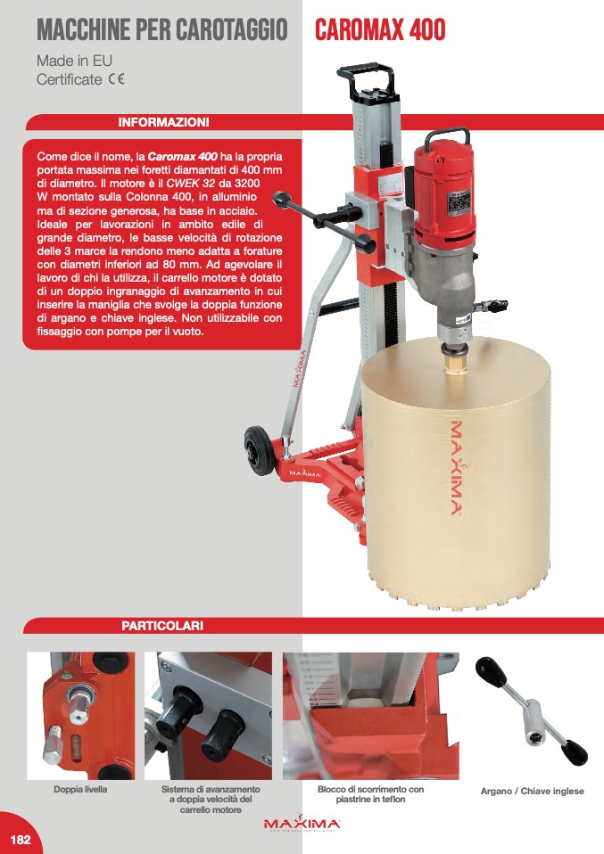 portata massima nei foretti diamantati di 400 mm