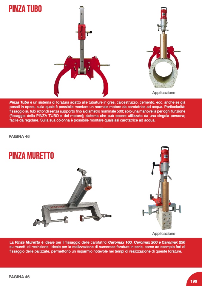 La Pinza Muretto è ideale per il fissaggio delle carotatrici Caromax 160, Caromax 200 e Caromax 250