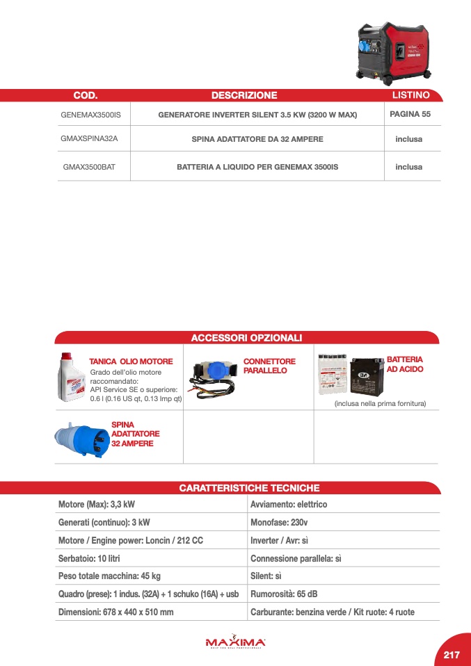 GENERATORE INVERTER SILENT 3.5 KW (3200 W MAX)