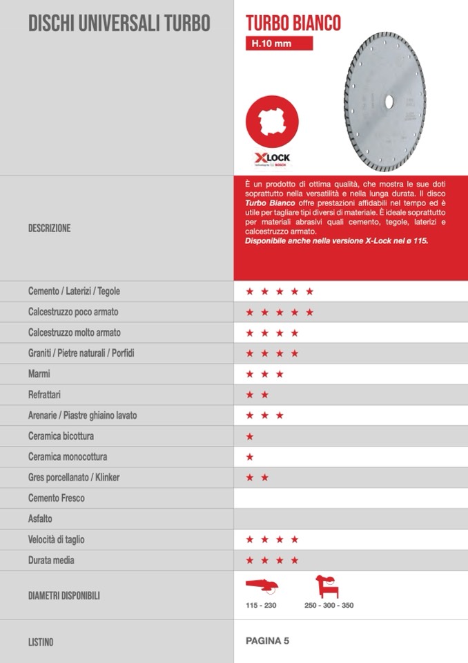 per materiali abrasivi quali cemento, tegole, laterizi e