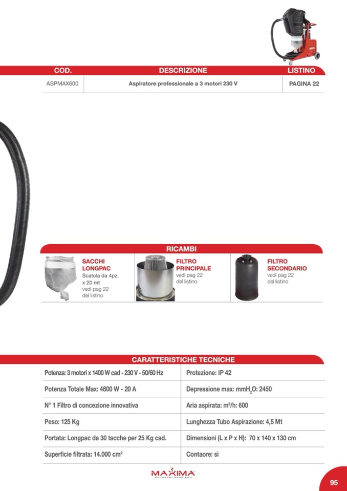 Aspiratore professionale a 3 motori 230 V