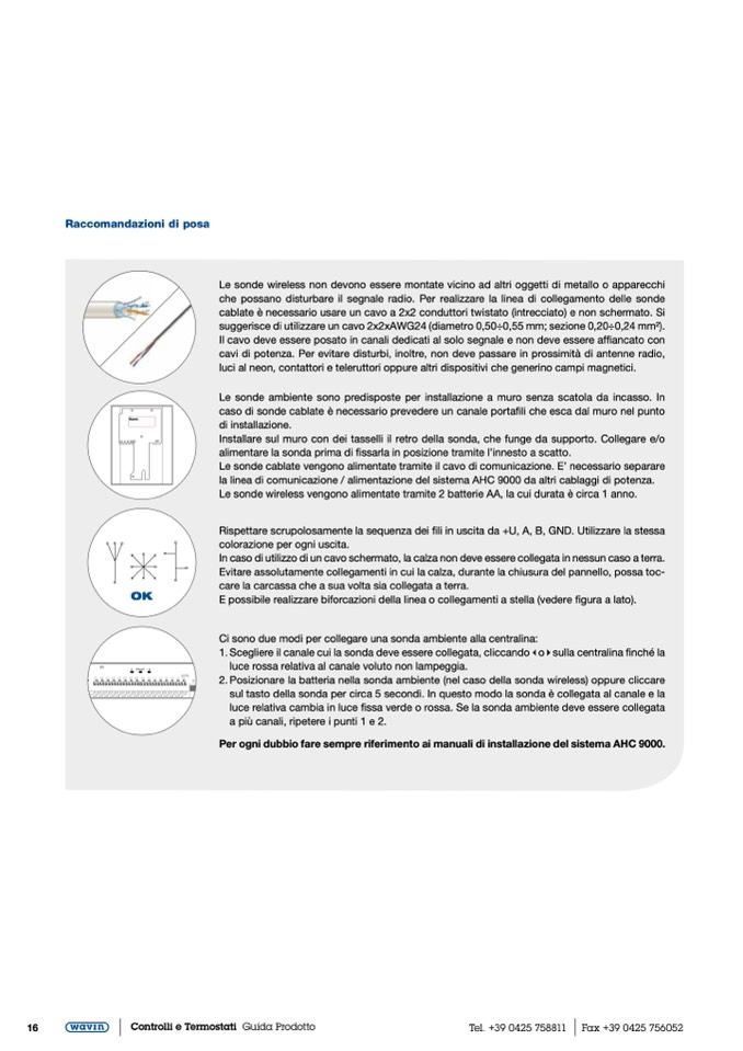 caso di sonde cablate è necessario prevedere un canale portafili che esca dal muro nel punto
