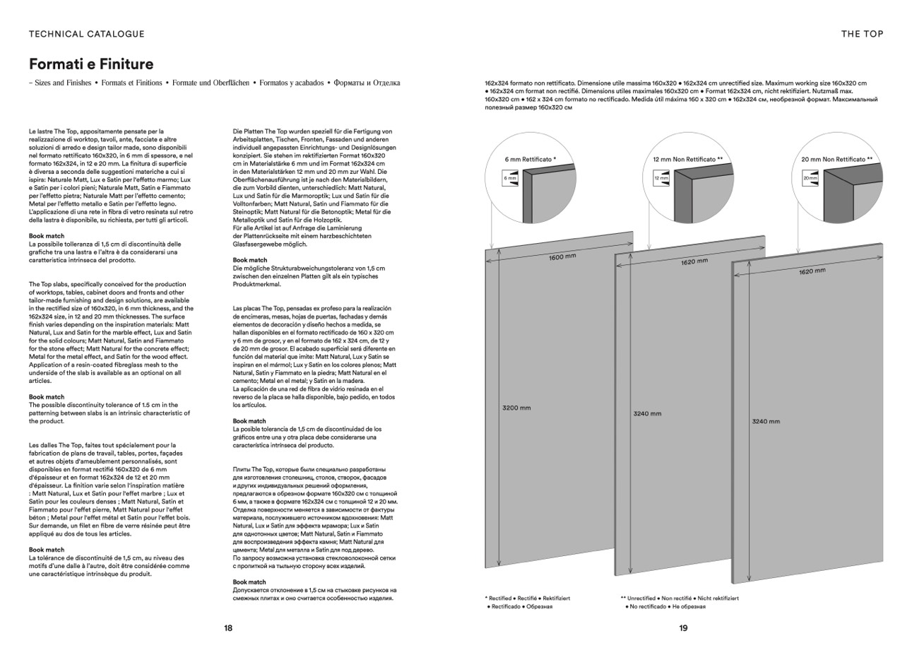 162x324 formato non rettificato. Dimensione utile massima 160x320 • 162x324 cm unrectified size. Maximum working size 160x320 cm