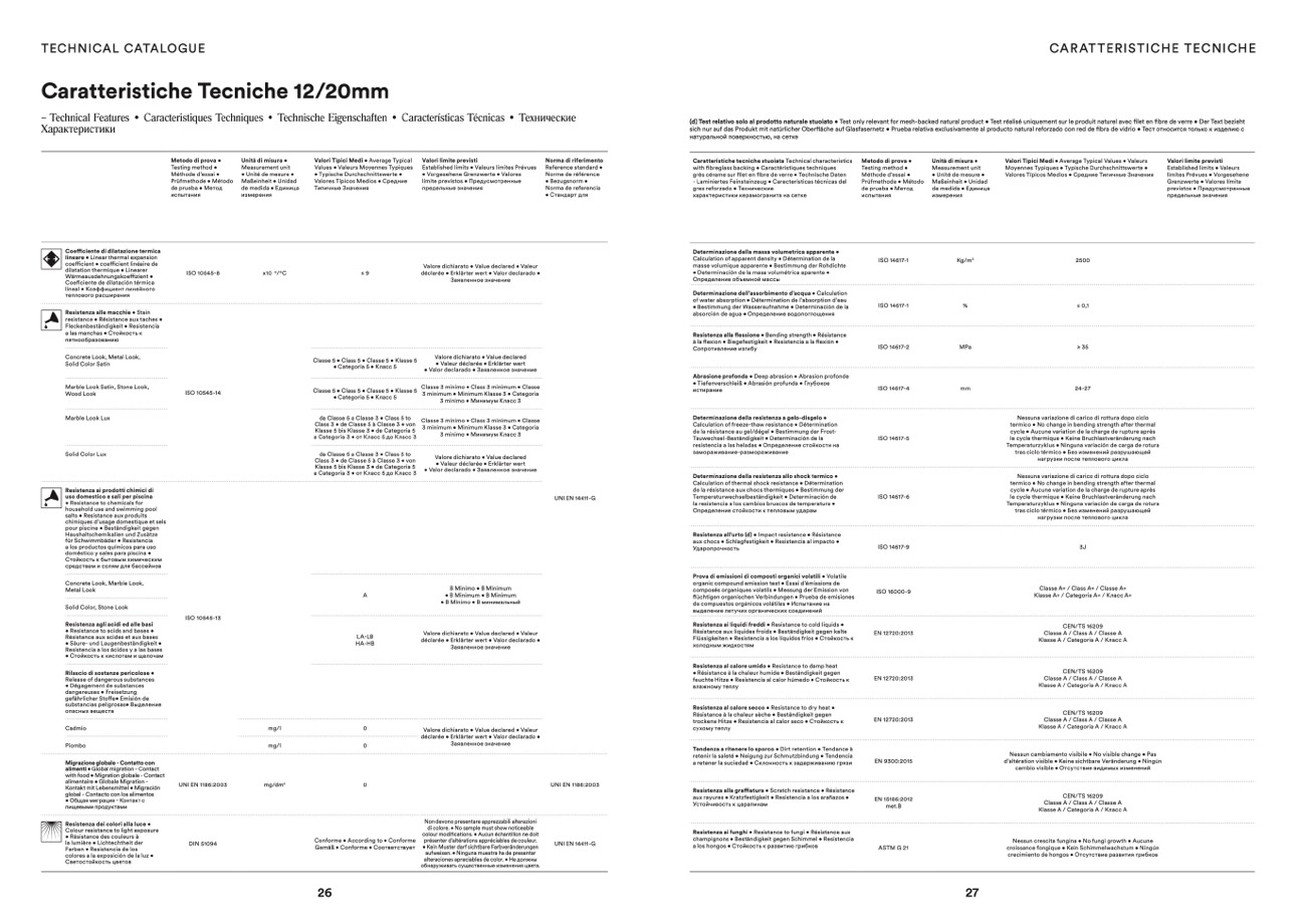 - Laminiertes Feinsteinzeug • Características técnicas del