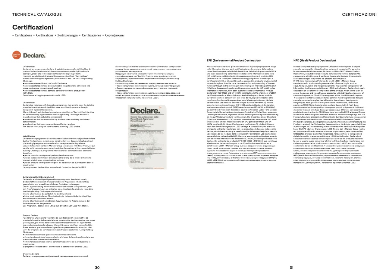 Marazzi Group’s self-declared products are classified as “Red List Free”, i.e. they