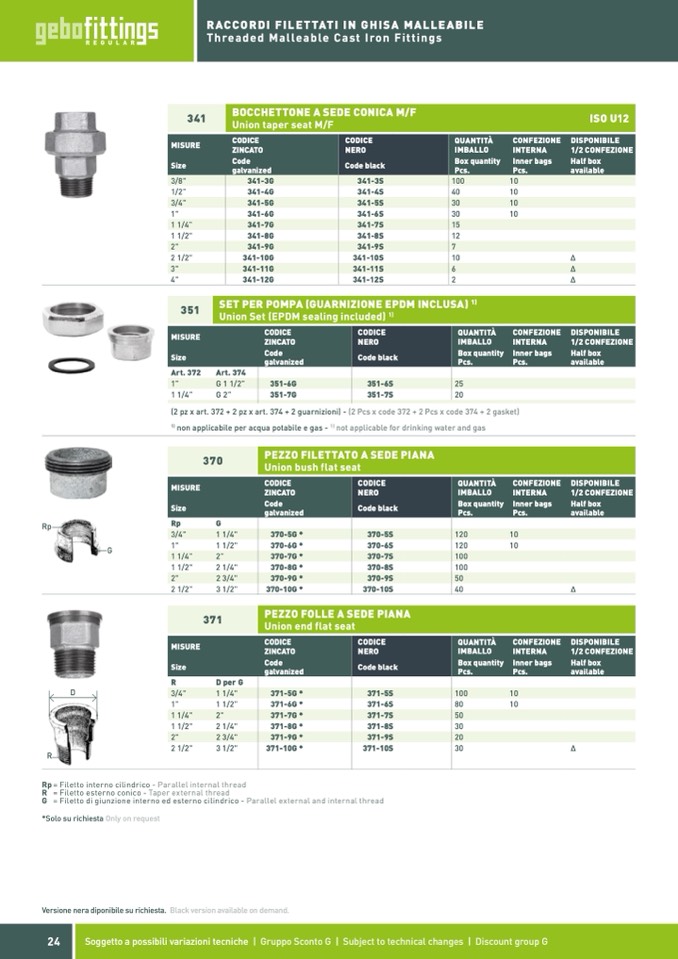 (2 pz x art. 372 + 2 pz x art. 374 + 2 guarnizioni) - (2 Pcs x code 372 + 2 Pcs x code 374 + 2 gasket)