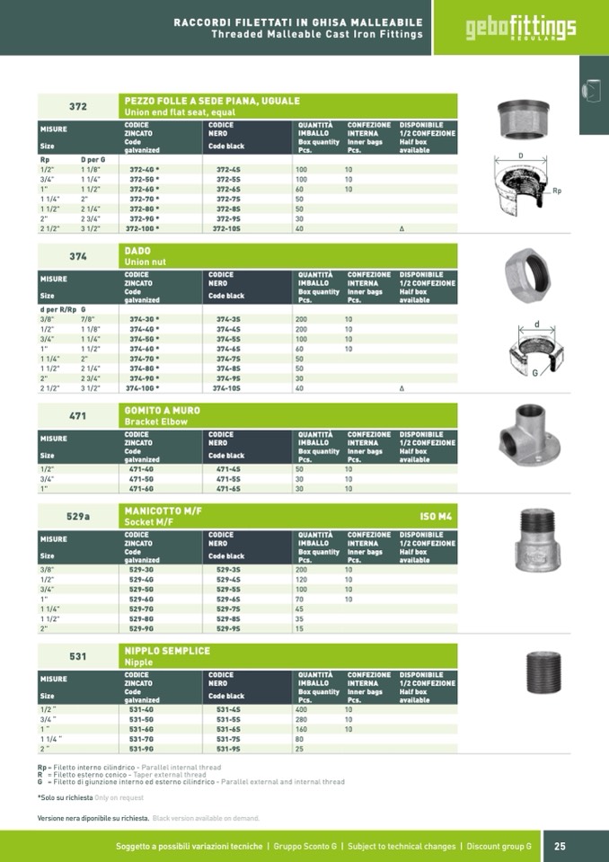G = Filetto di giunzione interno ed esterno cilindrico - Parallel external and internal thread
