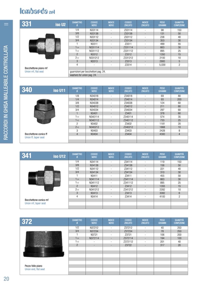 guarnizioni per bocchettoni pag. 24.
