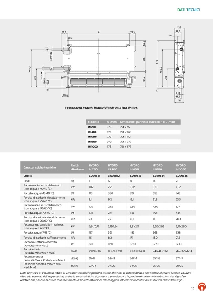 Nota tecnica: Per il numero totale di ventilconvettori che possono essere abbinati ai sistemi ibridi o alle pompe di calore occorre valutare