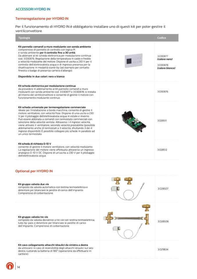 da prevedere in abbinamento ai kit pannello comandi a muro