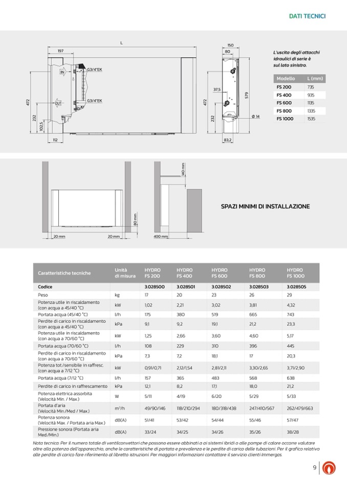 Nota tecnica: Per il numero totale di ventilconvettori che possono essere abbinati a ai sistemi ibridi o alle pompe di calore occorre valutare