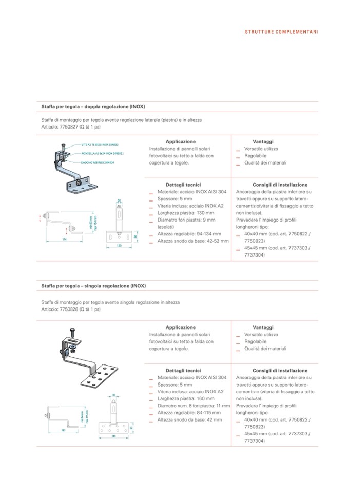 Staffa di montaggio per tegola avente singola regolazione in altezza