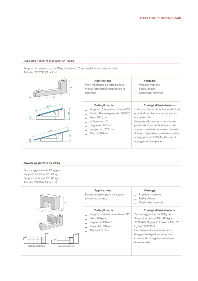 Supporto in calcestruzzo da 60 kg inclinato a 15° per moduli orizzontali / verticali