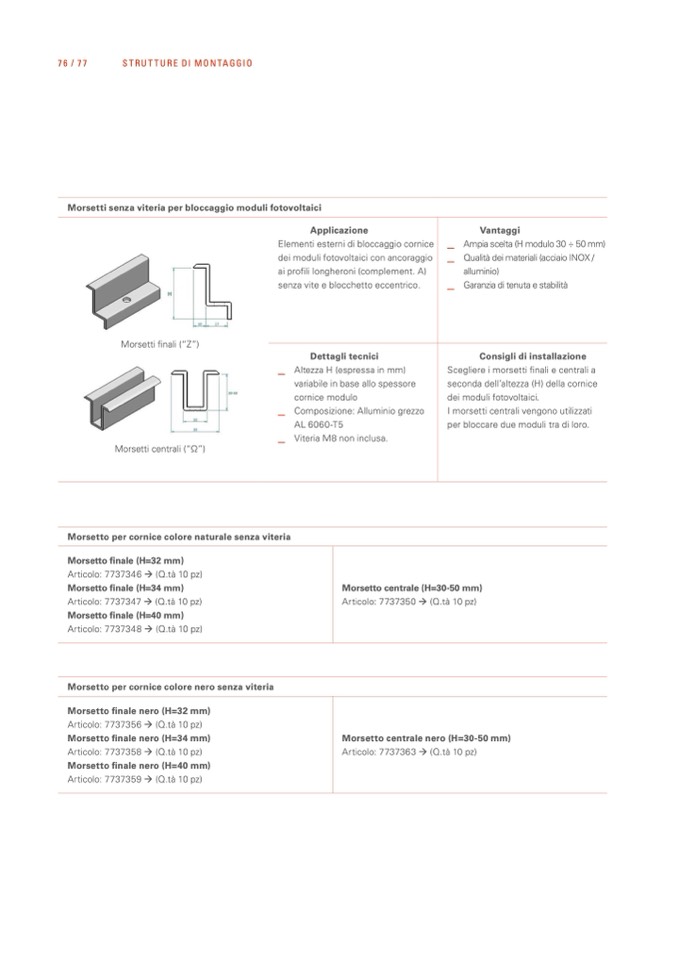 Morsetti senza viteria per bloccaggio moduli fotovoltaici