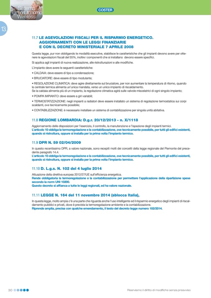 In questa legge, molto ampia c’è una parte che riguarda anche l’uso intelligente ed il risparmio energetico degli impianti di riscal-