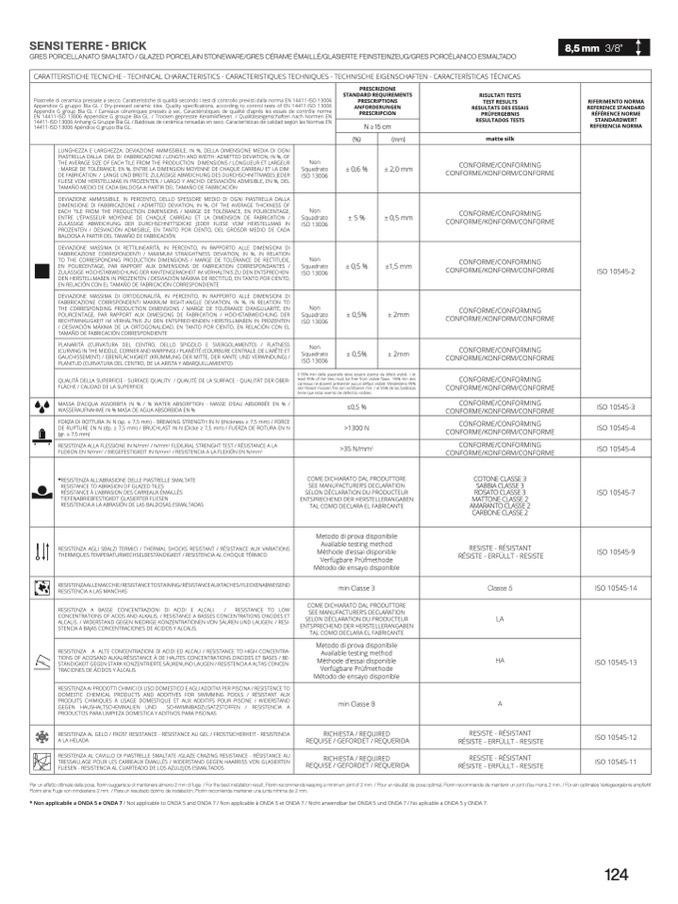 EN 14411-ISO 13006 Appendice G groupe BIa GL. / Trocken gepresste Keramikfliesen. / Qualitätseigenschaften nach Normen E