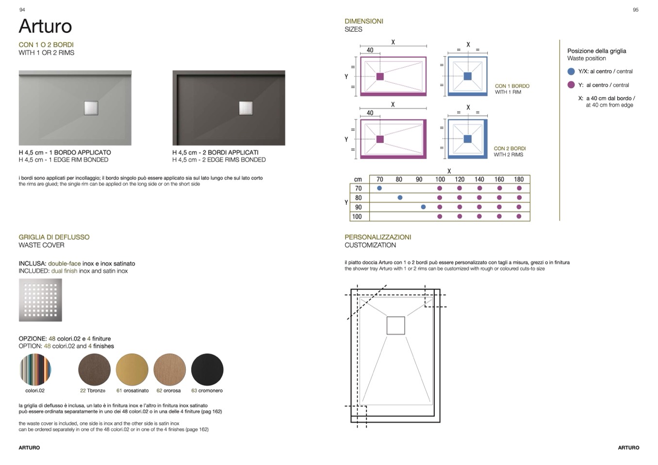 il piatto doccia Arturo con 1 o 2 bordi può essere personalizzato con tagli a misura, grezzi o in