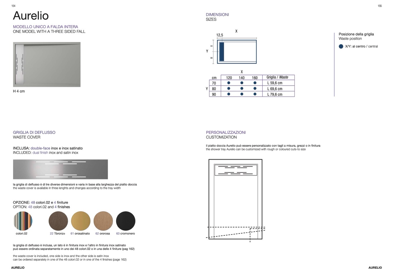 il piatto doccia Aurelio può essere personalizzato con tagli a misura, grezzi o in