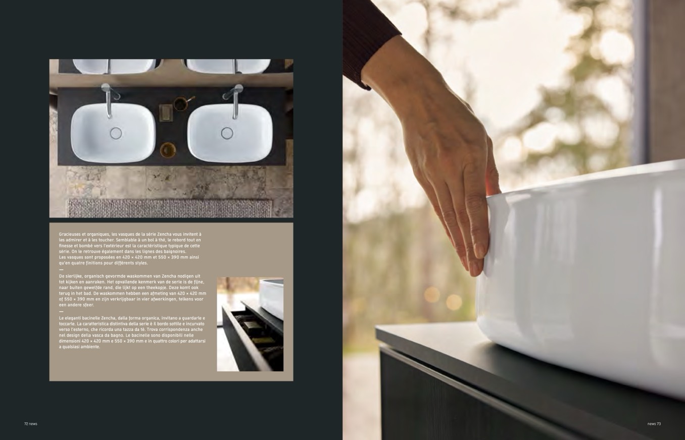 De sierlijke, organisch gevormde waskommen van Zencha nodigen uit
