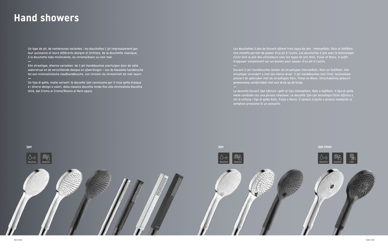 Eén straaltype, diverse varianten: de 1-jet-handdouches overtuigen door de volle