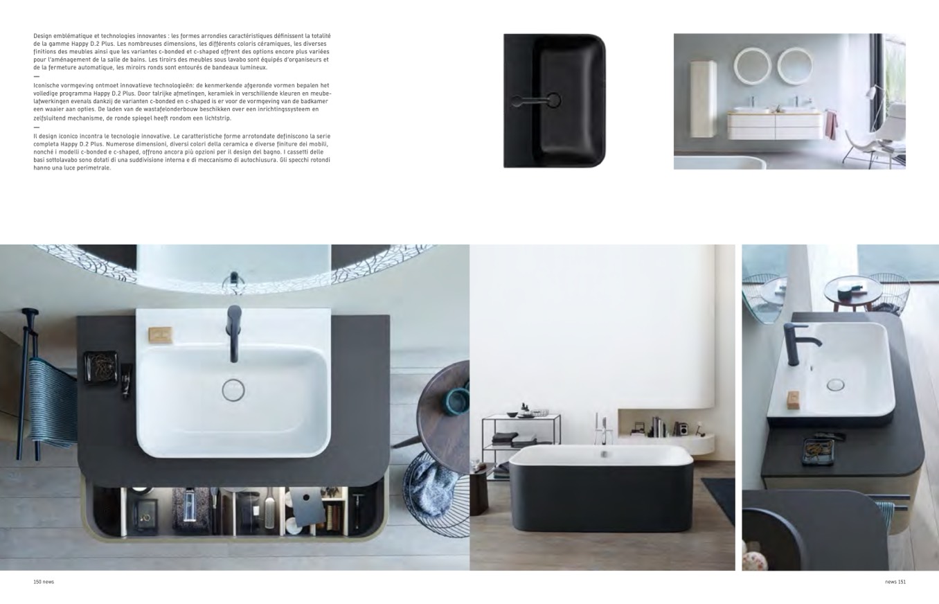 volledige programma Happy D.2 Plus. Door talrijke afmetingen, keramiek in verschillende kleuren en meube-