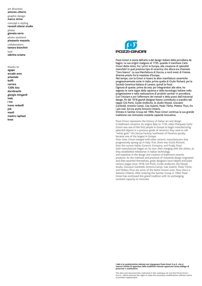 The data and characteristics indicated in this catalogue do not bind Pozzi-Ginori