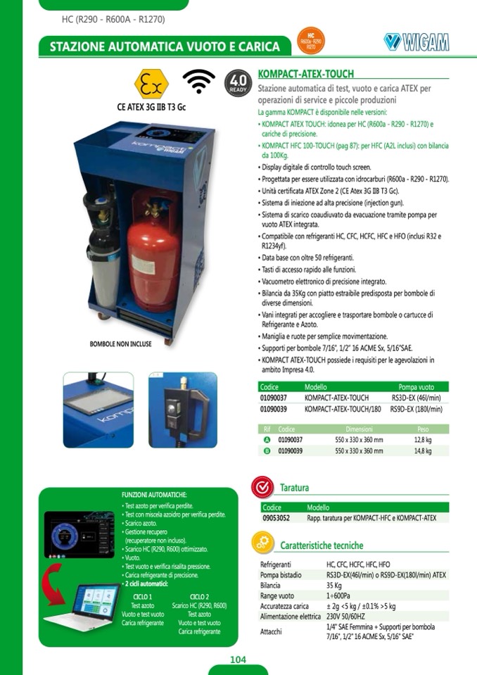 • KOMPACT HFC 100-TOUCH (pag 87): per HFC (A2L inclusi) con bilancia