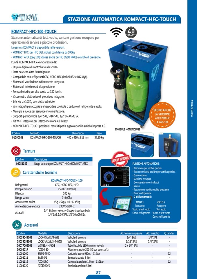 • KOMPACT HFC: per HFC (A2L inclusi) con bilancia da 100Kg