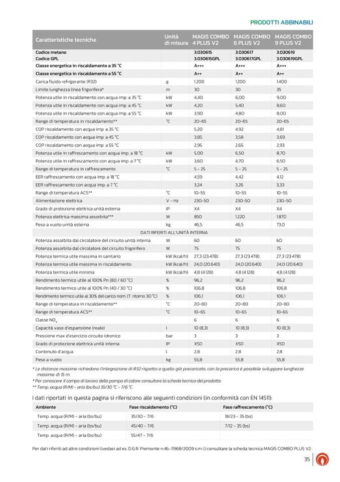 Per dati riferiti ad altre condizioni (vedasi ad es. D.G.R. Piemonte n.46-11968/2009 s.m.i.) consultare la scheda tecnica MAGIS COMBO PLUS V2.