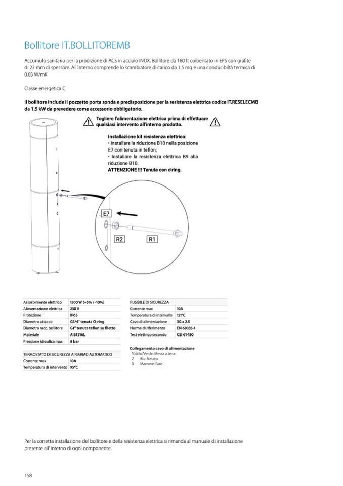 Per la corretta installazione del bollitore e della resistenza elettrica si rimanda al manuale di installazione