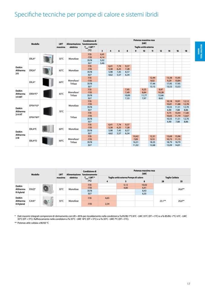 * Dati massimi integrati comprensivi di sbrinamento con UR = 85% per riscaldamento nelle condizioni a Ta BS/BU 7°C/6°C - LWC 35°C (DT = 5°C) e a Ta BS/BU -7°C/-6°C - LWC