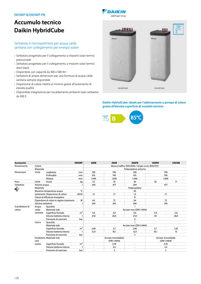 › Disponibile integrazione per riscaldamento ambienti (solo serbatoio