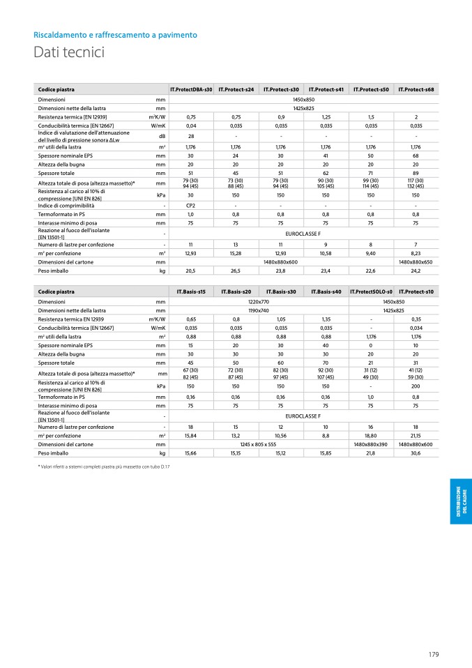 * Valori riferiti a sistemi completi piastra più massetto con tubo D.17
