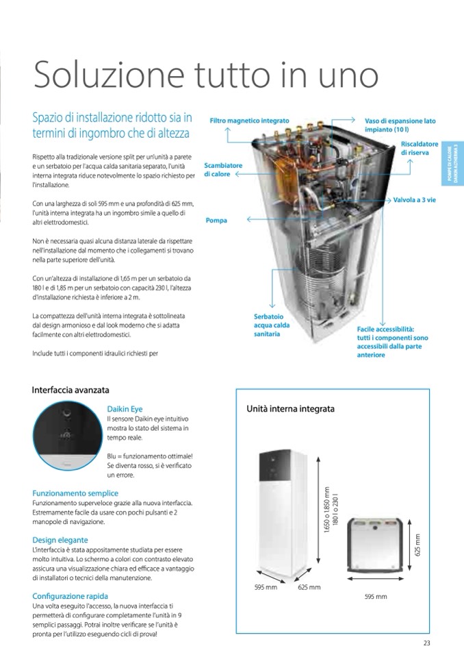 l'unità interna integrata ha un ingombro simile a quello di