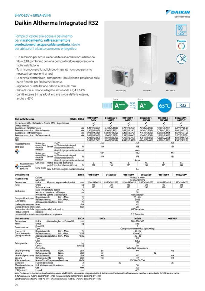 Note: Prestazioni in riscaldamento calcolate in accordo alla EN 14511 a pieno carico integrato di ciclo di sbrinamento. Prestazioni in raffrescamento calcolate in accordo alla EN 14511 a pieno carico.