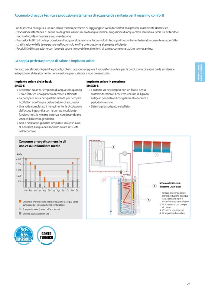 › Possibilità di integrazione con l’energia solare rinnovabile e altre fonti di calore, come una stufa o termocamino.