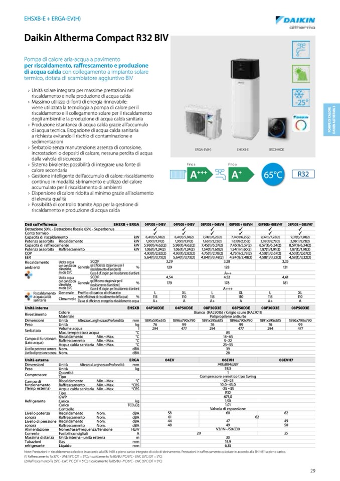 Note: Prestazioni in riscaldamento calcolate in accordo alla EN 14511 a pieno carico integrato di ciclo di sbrinamento. Prestazioni in raffrescamento calcolate in accordo alla EN 14511 a pieno carico.