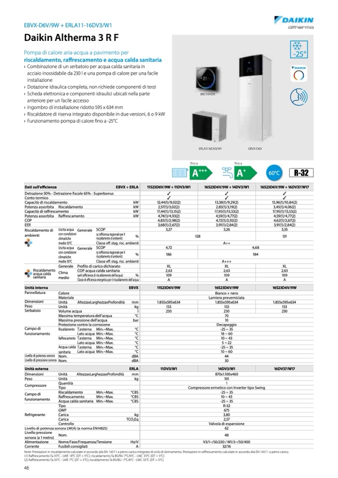 (2) Raffrescamento Ta 35°C - LWE 7°C (DT = 5°C); riscaldamento Ta BS/BU -7°C/6°C - LWC 35°C (DT = 5°C)