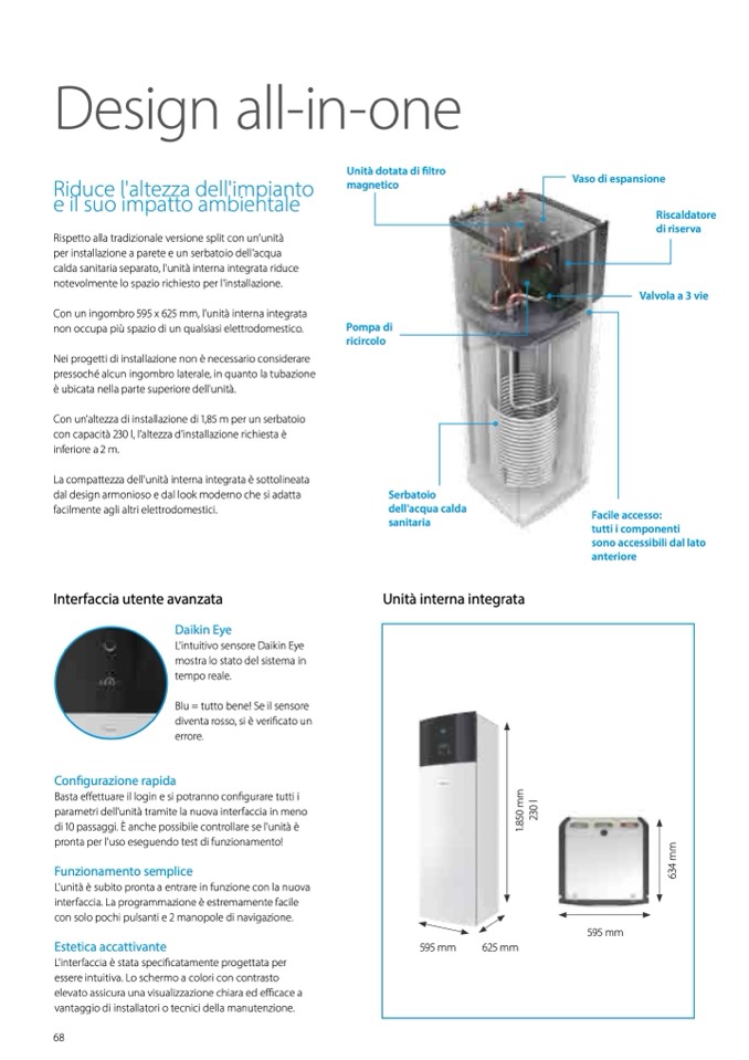 Con un ingombro 595 x 625 mm, l'unità interna integrata
