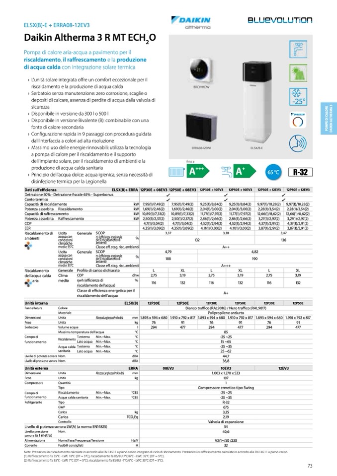 Note: Prestazioni in riscaldamento calcolate in accordo alla EN 14511 a pieno carico integrato di ciclo di sbrinamento. Prestazioni in raffrescamento calcolate in accordo alla EN 14511 a pieno carico.
