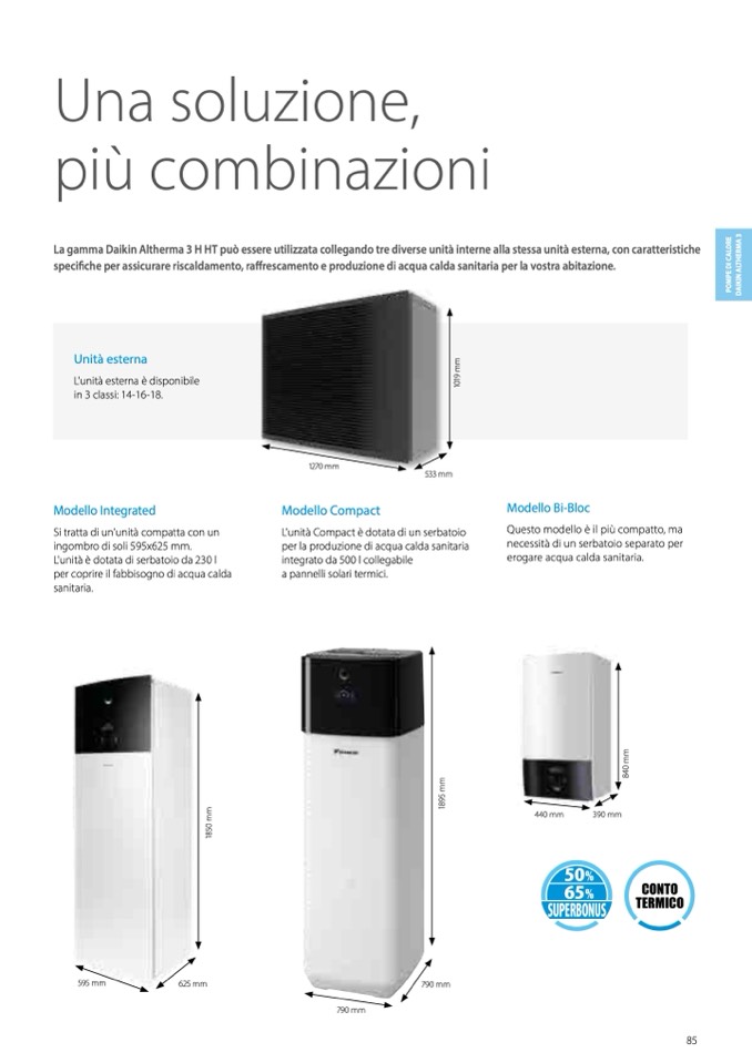 specifiche per assicurare riscaldamento, raffrescamento e produzione di acqua calda sanitaria per la vostra abitazione.