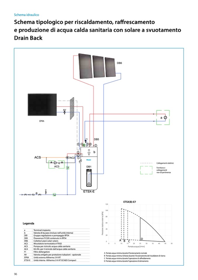 B Portata acqua minima richiesta durante il funzionamento del riscaldatore di riserva