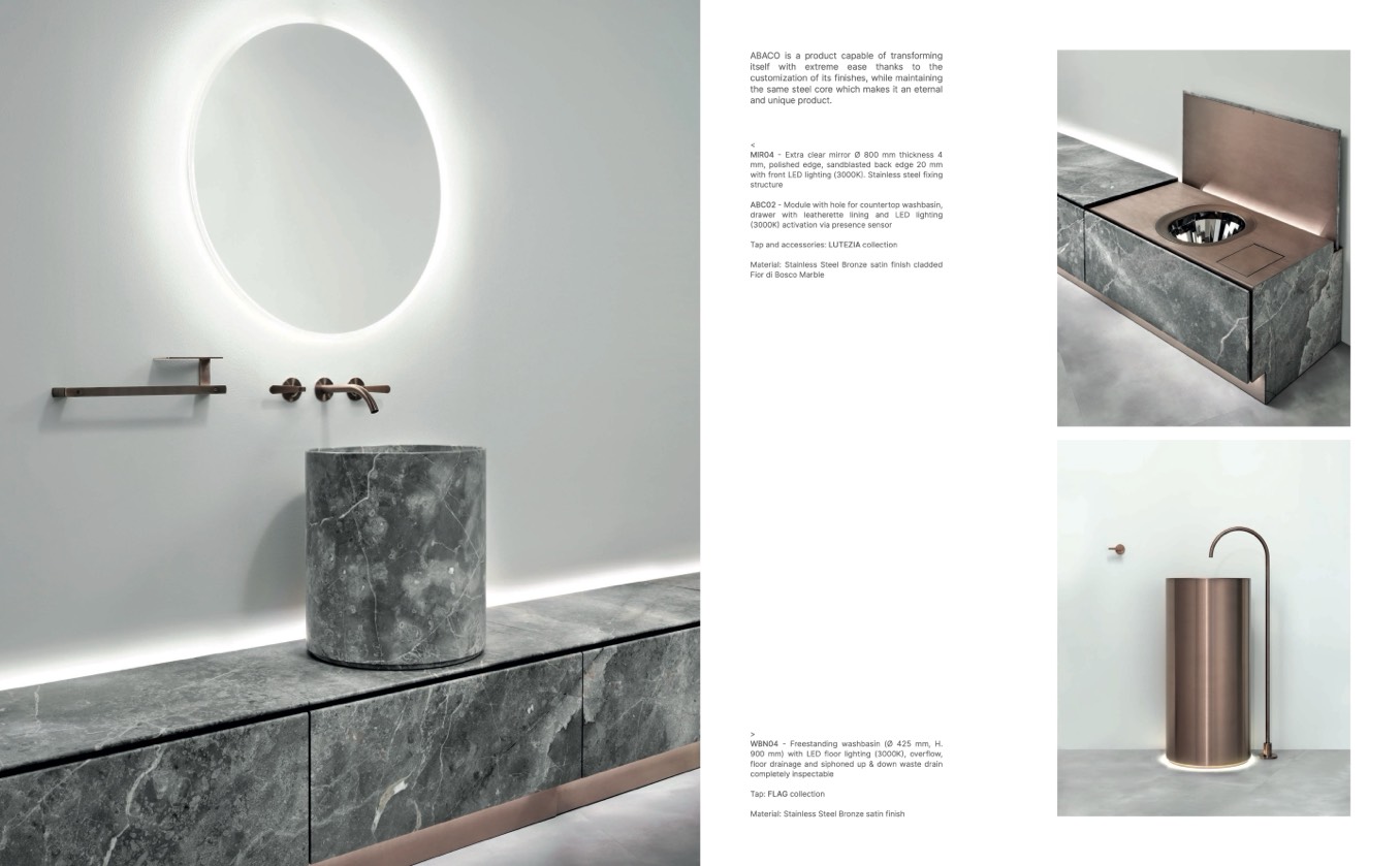 with front LED lighting (3000K). Stainless steel fixing