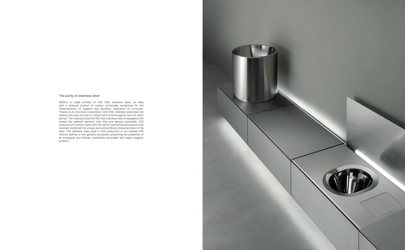 ABACO is made entirely of AISI 316L stainless steel, an alloy