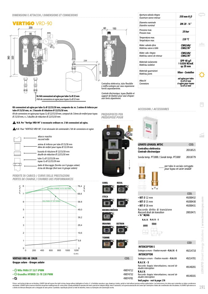 N.B. Pour “VERTIGO VRD-90”, il est nécessaire de commander 2 kit de connexions en ogive.