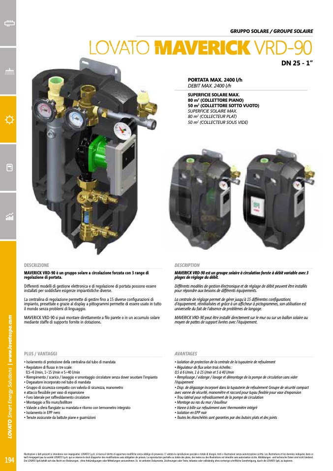 MAVERICK VRD-90 è un gruppo solare a circolazione forzata con 3 range di